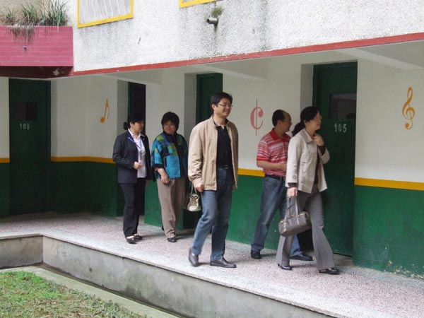 学校副校长李慧中陪同专家组考察学校艺术楼
