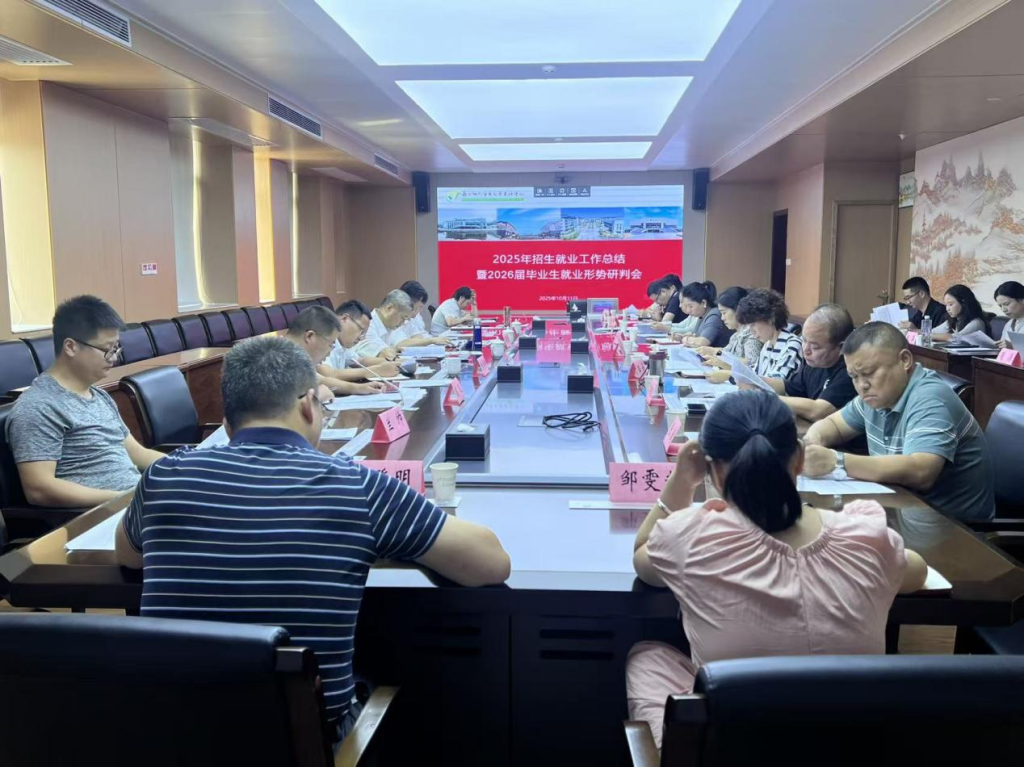 近日,我校召开“2025年招生就业工作总结暨2026届毕业生就业形势研判会”。全体在校领导班子成员、招生就业处、教务处、学保处、各二级学院负责人及校企合作单位代表参会,会议由党委副书记兼纪委书记李慧中主持。
