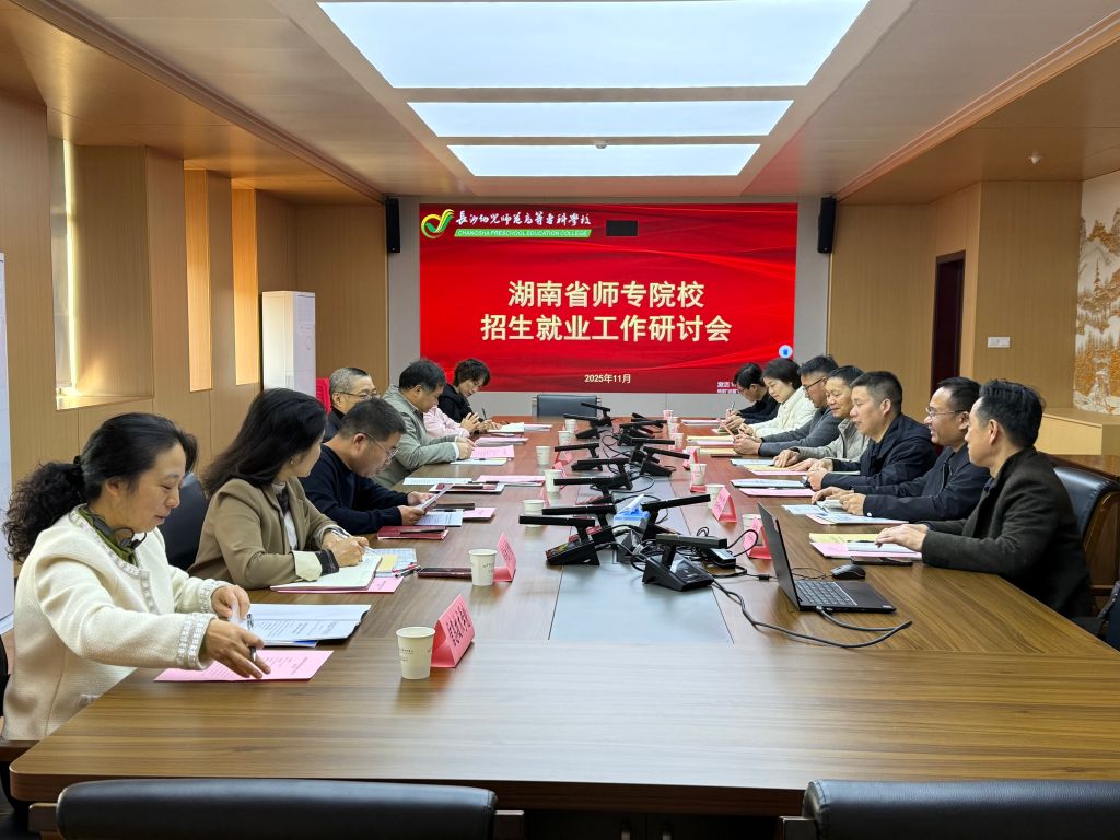 2025年11月28日上午,湖南省师专院校招生就业工作交流会在长沙幼儿师范高等专科学校道馨楼302顺利召开。会议由我校招生就业处处长高凡主持,省教育厅一级调研员李希敏、长沙幼师高专党委副书记兼纪委书记李慧中出席,省内9所师范专科院校招生就业部门负责同志参加,共商招生就业与学校转型发展大计。