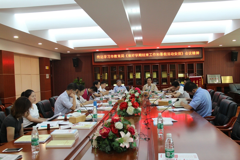 为落实《长沙市暑期学校安全暨预防学生溺水工作布置会和教育局暑期重点工作布置会》会议精神,7月6日上午,我校召开中层以上干部大会,专门传达《长沙市教育局关于暑期重点工作会议精神》并对学期结束工作和暑假工作进行全面部署,会议由党委书记张国斌主持,校长郭正良作专题讲话。