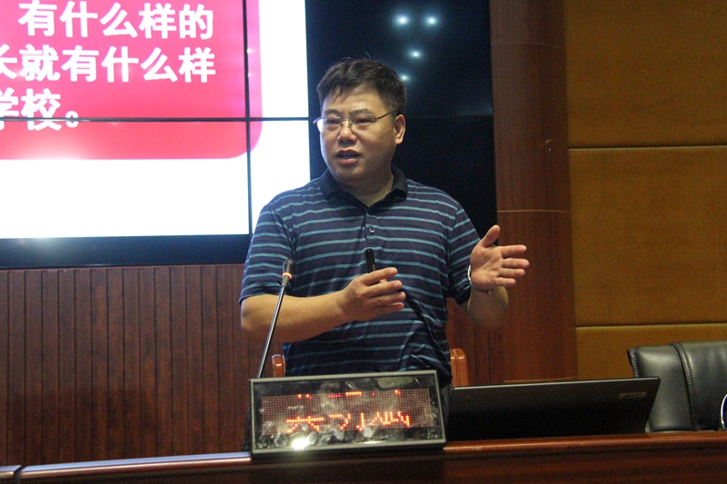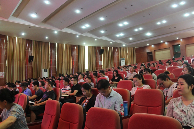 7月10日上午,我校在汇智厅组织2018年度暑期校本培训,湖南省中小学教师发展中心龚明斌教授应邀来校做《学校跨越式发展与教师专业成长》专题讲座,会议由学校教研中心主任胡小华主持。