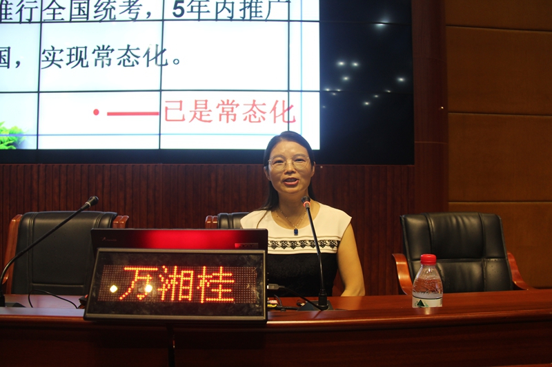 上午,万湘桂运用自身丰富的教学实践经验和深厚的专业知识素养作《幼师资格证国考与幼儿教师培养》专题讲座,校长郭正良主持讲座。万湘桂密切结合当下幼儿教师资格证国考面临的严峻形势和背景,联系中职和大专学前教育专业的特点,详细讲解了考试内容与形式、命题原则、考试大纲以及师范院校应对措施,提出了如何应考及培养优秀幼儿园教师的建议,为在座教师今后的教育教学工作指明了方向,为我校学前教育专业建设提供了有益参考。