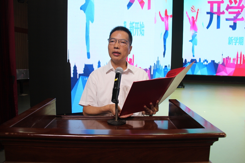 在雄壮的国歌声中开学典礼拉开了帷幕。校长郭正良发表新学期致辞,他深情回顾了由历代师生不懈努力,共同奋斗书写下的宁师百年历史,再次强调了宁师始终坚持的育人理念和教育精神,勉励青年学生在教育改革的浪潮中要坚持培养健全的人格,练就健康的体魄,处理好课内学习和学有所长的关系,为未来的职业生涯打下坚实基础。郭正良寄语全体教师,希望大家珍惜在宁师的工作机会,将快乐与幸福传递给学生,让我们的学生成长为自信进取,快乐向上的绚丽之花。