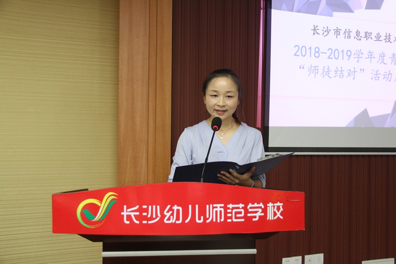 仪式上,周文华对我校重新修订的《长沙市信息职业技术学校2018-2019学年度“青蓝工程”师徒结对方案》进行了解读并宣读了师徒结对教师名单。周文华强调,“青蓝工程”是我校一直坚持开展的一项促进青年教师发展、提升骨干教师能力的工作,希望师傅担负起培养青年教师的责任,徒弟虚心向师傅学习,共同努力,不断提升我校教师队伍的整体素质。