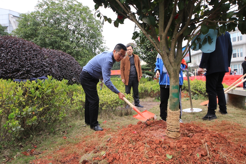 草长莺飞三月天,正是植树好时节。3月15日下午,长沙职教基地举行2019年“3•12”植树节集中义务植树活动。我校校长郭正良、副校长周文华、校长助理兼学生科科长刘建乐、校长助理兼教务科科长张学锋、党政办公室副主任何曙光、团委副书记黄丽辉以及学生志愿者代表共10余人参加了植树活动。