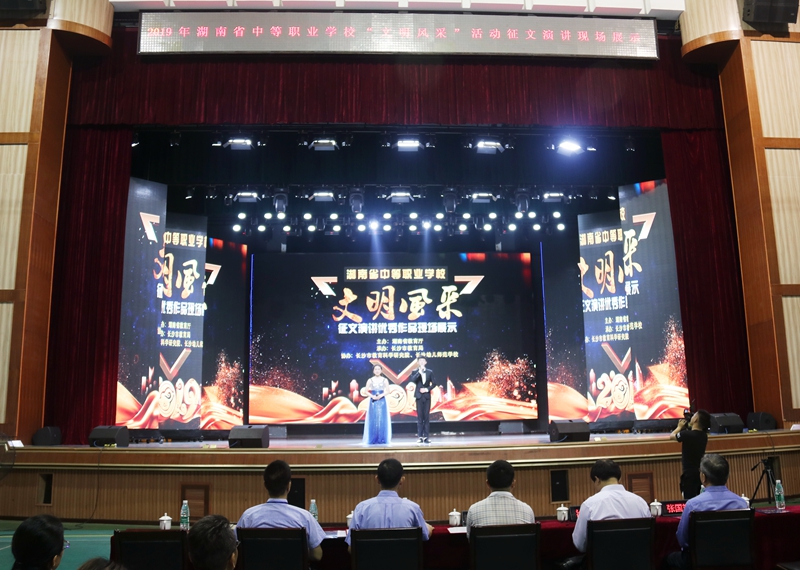 6月3日上午,2019年湖南省中等职业学校“文明风采”活动征文演讲现场展演在长沙幼儿师范学校汇美馆隆重举行,此次活动由湖南省教育厅主办,长沙市教育局承办、长沙市教育科学研究院和长沙幼儿师范学校协办,活动全程进行了同步网络高清直播。湖南省教育厅职成处副处长王宇、长沙市教育局副局长杨庆江、职成处处长范霖、长沙市教科院副院长涂立奇、长沙市职教基地协调办主任戴伟军、长沙幼儿师范学校校长郭正良、书记张国斌等领导出席展演活动。全省中等职业学校“文明风采”活动征文演讲赛获奖单位师生代表以及长沙幼儿师范学校近800名师生代表观看展演。