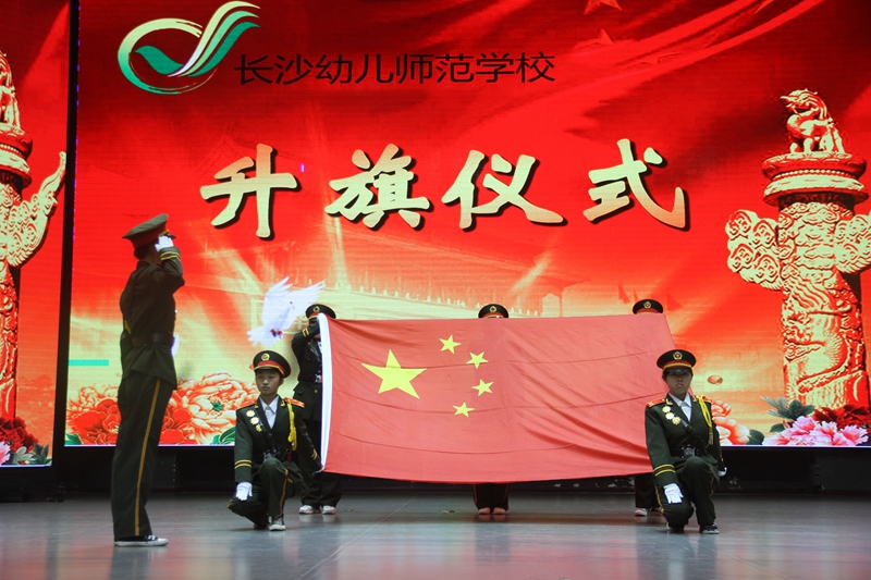 为加强长沙幼儿师范学校师生的爱国意识,深化爱国主题教育,增强学生的民族自信心与自豪感。9月23日学前教育系全体师生在汇美馆进行了“庆祝新中国成立70周年----我和祖国共成长”国旗下讲话。