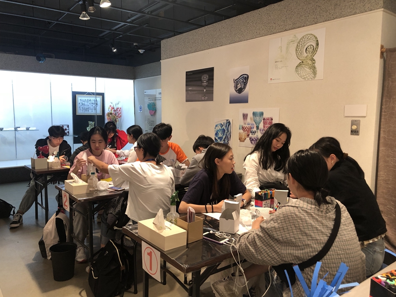 师生一到萨摩切子——玻璃工艺品制作工厂,在导游的安排下,迫不及待地开始了“玻璃风铃”工艺品的制作!孩子们手捧小巧风铃,精心描画着。有的描花草树木,有的绘心仪动物;有的写上美好的祝福,有的寄托美丽的愿景。其认真执着、全神贯注之程度,感动着在旁的日本友人!