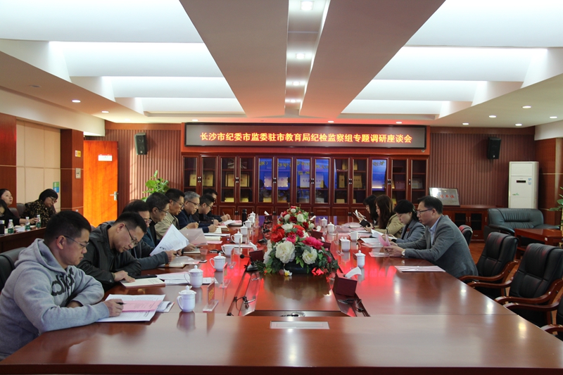 11月14日上午,长沙市纪委市监委驻市教育局纪检监察组组长谢小红一行5人来校开展专题调研。市纪委市监委驻市教育局纪检组副县级纪检员刘华林、副组长肖璞等陪同调研,学校校长郭正良、党委书记张国斌、党委副书记兼纪委书记李慧中等全体领导班子成员及科室主要负责人参加了座谈。