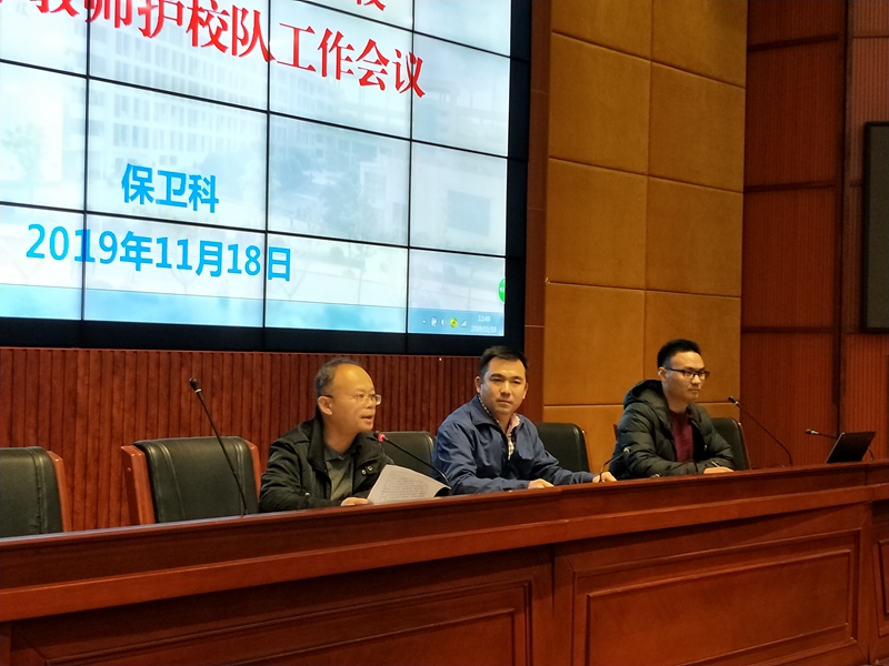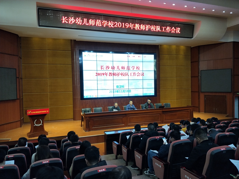 为了进一步加强学校安全保卫工作,维护校园稳定和师生安全,根据市教育局校园安全管理有关文件精神,长沙幼儿师范学校于2019年11月18日召开2019年教师护校队工作会议,会议由保卫科朱志成老师主持,首先回顾了学校教师护校队安全工作的情况,充分肯定队员们在维护校园和校园周边环境的有序、安全尽职尽责做出的巨大贡献。随后保卫科戴申林老师就护校队的职责、工作要求及考勤办法做出说明。最后学校分管安全工作副校长文孟飞与大家共同学习了《2019年下学期教师护校队工作方案》,他强调:目前学校正处在创建高专的关键时期,更需要护校队老师们树立安全工作摆在首位的意识和秉承认真负责的工作态度,遵守值班的纪律要求,进一步提升护校的工作效率,及时处理好各类问题,切实维护好校园及周边秩序,继续为学校师生站好岗,当好师生心目中真正的“保护神”。