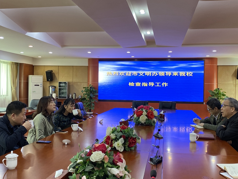 11月21日上午,长沙市教育局副主任督学、文明办副主任曹攀、长沙职教基地协调办主任戴伟军、副主任王淑衡一行5人到长沙幼儿师范学校就文明创建迎国检工作及文明校园创建工作的主要做法和经验进行考察调研。