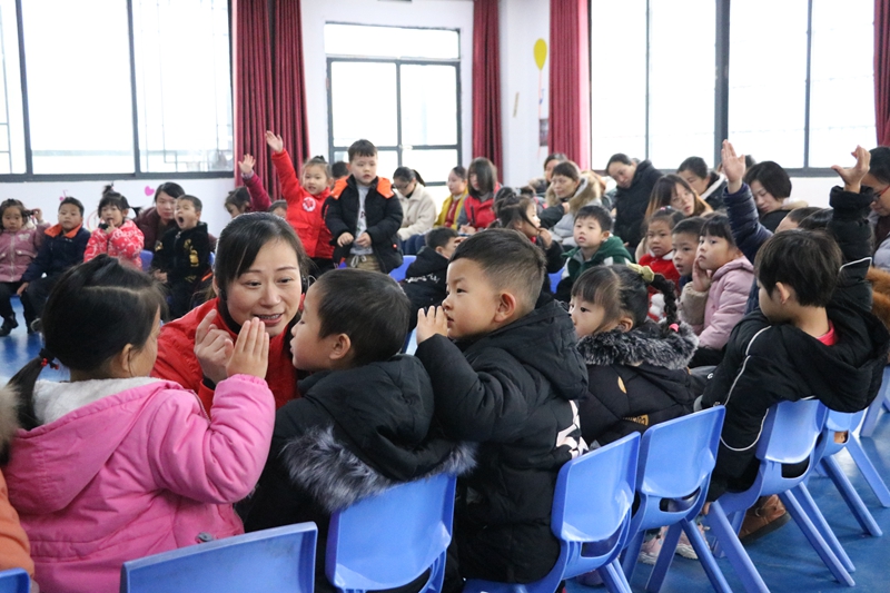 “学会拒绝,对不喜欢的亲亲勇敢说不!”长沙幼儿师范学校学前教育系教学副主任闵捷,是全国玩教具制作能手,“中国第九届宋庆龄幼儿教育提名奖”,她为灰汤镇中心幼儿园大班小朋友带来了一堂有趣的活动《不要随便亲我》。通过活动,小朋友们了解到不合适的亲吻带来的危害以及学会了如何拒绝不喜欢的亲吻。闵捷主任温柔甜美的声音、和蔼可亲的笑容、张驰有度的课堂深深感染了每一位小朋友,活动在《躲躲大嘴巴》游戏中画上了圆满的句号。