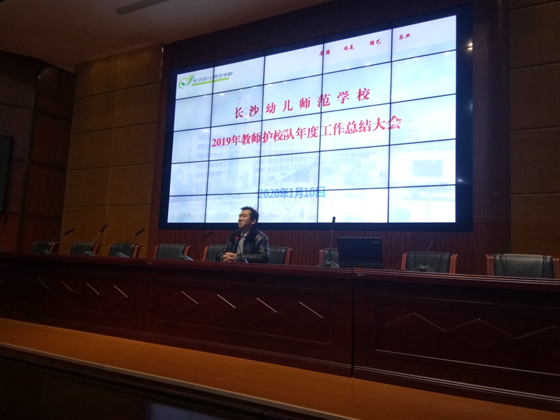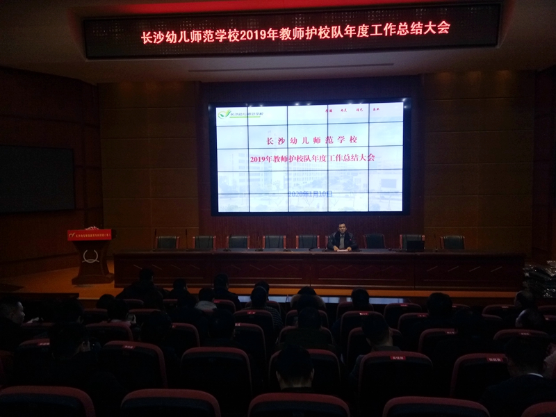 2020年1月10日下午,长沙幼儿师范学校在汇智厅召开了2019年度教师护校队工作总结大会,会议由学校保卫科负责组织,全体护校队员参加了会议。