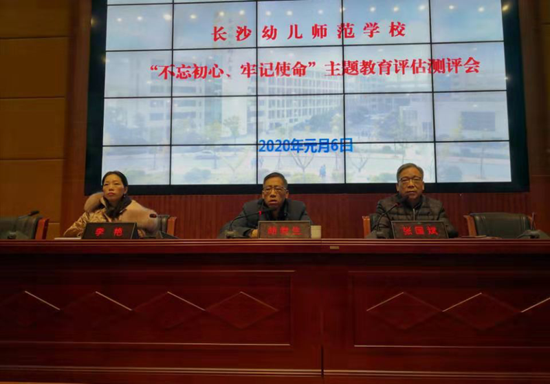 会上,胡党生组长对测评工作提出要求并高度评价了学校“不忘初心、牢记使命”主题教育取得的成效。他表示,主题教育开展以来,长沙幼儿师范学校紧密围绕两校融合、创建幼专中心工作不断推进主题教育落细落实,紧紧围绕“守初心、担使命、找差距、抓落实”的总要求,对焦“五个具体目标”,突出学习教育、调查研究、检视问题、整改落实、组织领导五个到位。他强调,开展主题教育评估工作,是总结主题教育经验、检验主题教育成效的重要手段。学校下一步应切实将好经验好做法总结提升为制度体系和长效机制,以更严的标准、更实的作风、更高的要求统筹推进整改落实,以主题教育实际成效推动学校升格新发展。