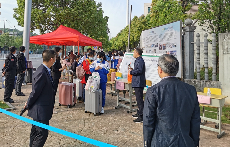长沙市教育局政策法规处处长周小青到学校对第二批开学工作进行督查,详细了解了师生健康监测、返校人员管理、防控物资准备、食堂就餐安排等方面情况,实地查看了门卫值班室、临时隔离室、教室、食堂等重点区域,他对学校全面的疫情防控措施、细致的开学报到流程给予了充分肯定。同时,他要求学校要进一步围绕重点区域,做好复课后的疫情防控,确保全面复课平稳有序、防控缜密、运转正常。