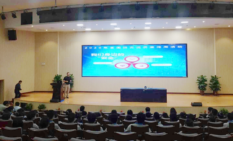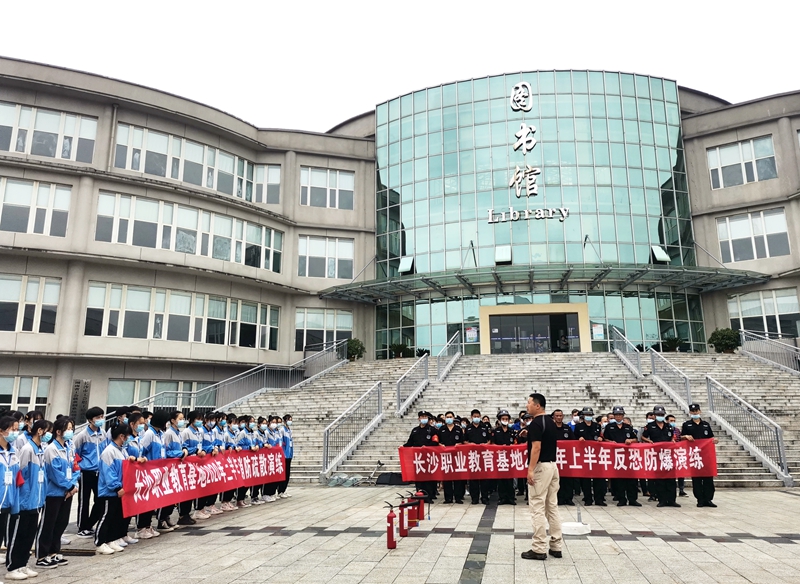 长沙职业教育基地汇集了五所职教名校,拥有4万多名师生员工,人员密度大,教室、实训场、实验室、机房、图书馆、食堂、学生公寓等设施设备相对密集均是安全事故易发因素,安全管理面临极大的考验。为深入学习宣传贯彻习近平关于防灾减灾救灾等应急管理重要论述精神,认真组织开展今年全国防灾减灾日宣传教育活动,突出“提升基层应急能力,筑牢防灾减灾救灾的人民防线”主题,采取有效举措普及安全知识,培育安全文化,增强基地师生及物业人员的消防安全意识,提高防灾减灾救灾及应急突发事件处置能力,在职教基地协调办、保利天创物业等负责人组织下,2020年5月22日上午我校保卫科受职教基地协调办的邀请,对全基地100多名学校物业人员及师生代表进行安全培训﹑消防演练及防暴反恐指导,我校60多名学生干部﹑兄弟学校的安全专干也到场参与。