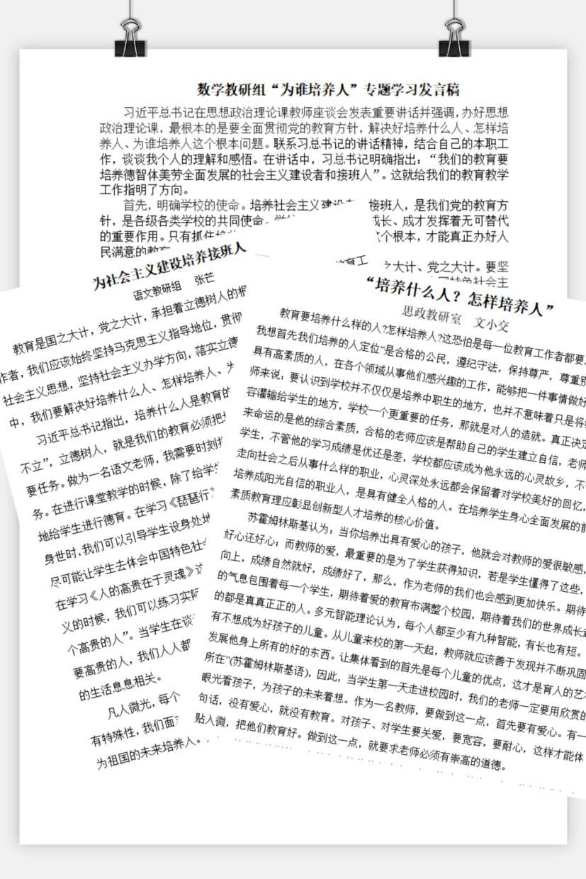 5月25日--6月10日各教研室围绕“为谁培养人”开展了专题讨论学习活动,组织每位教师认真学习了《意见》原文和《习近平关于教育的重要论述》,每位教师都围绕主题结合自身教学工作实际做了积极讨论发言。本次讨论交流活动组织有序,准备充分,主题明确,讨论热烈。
