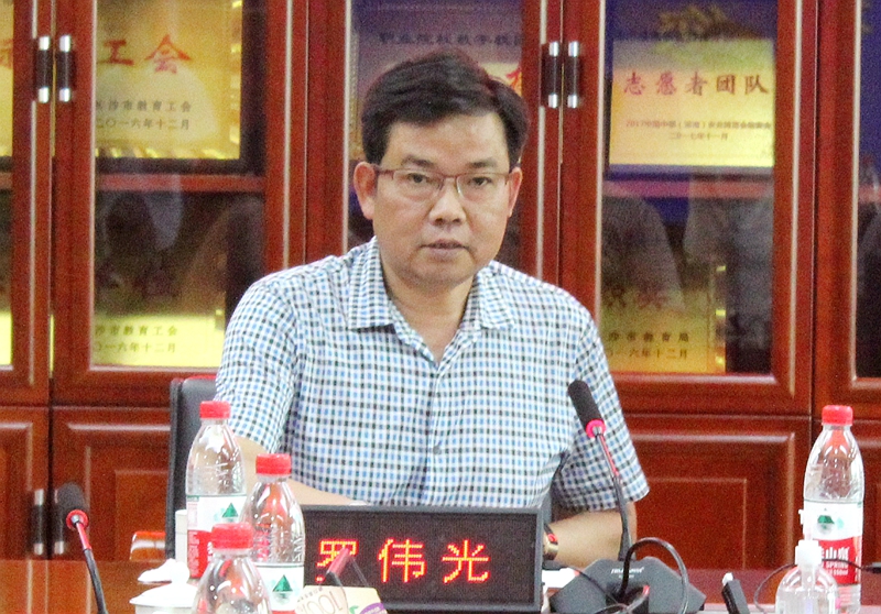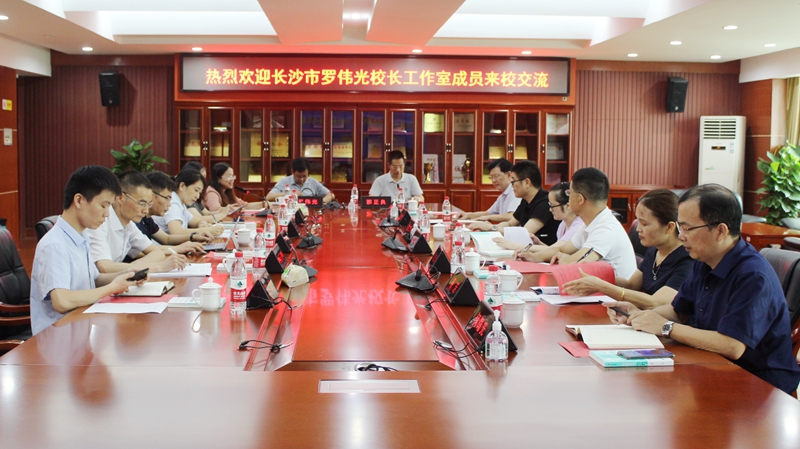 7月16日上午,长沙市罗伟光校长工作室首席校长罗伟光带领来自6所学校的11名工作室成员来校访问交流,我校校长郭正良、副校长周文华、校长助理兼督导评建科科长刘志华、办公室主任何曙光热情接待来访嘉宾。座谈交流会由长沙高新技术工程学校副校长马燚主持。