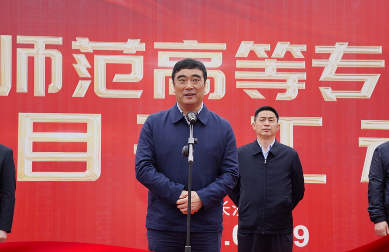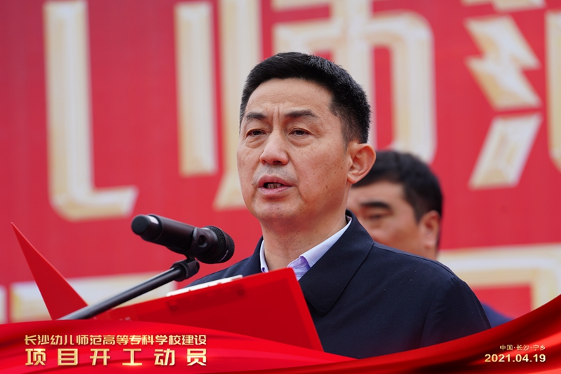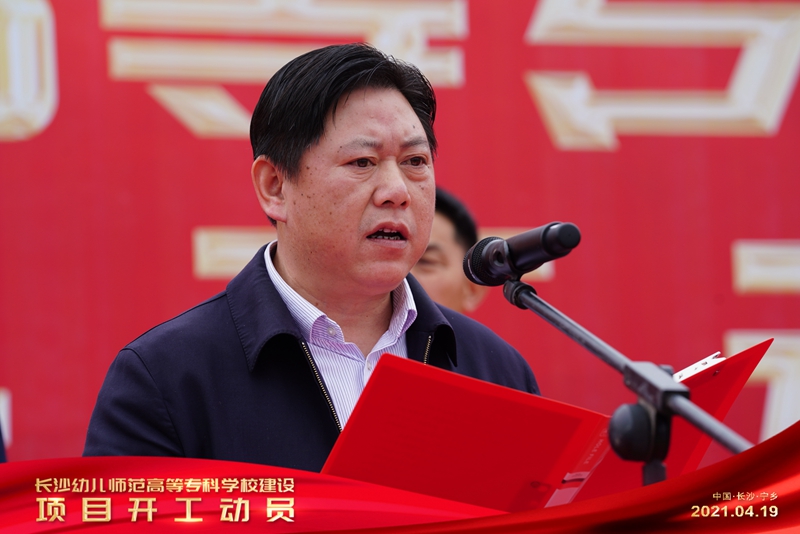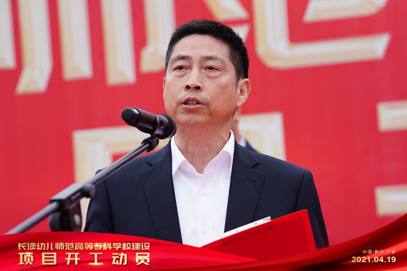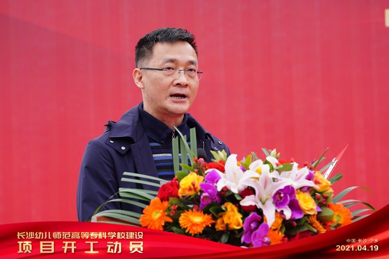 长沙幼儿师范学校党委书记张国斌在仪式上致辞。他指出,长沙幼专致力于培养、培训全市学前教育师资,新校开工建设是学校发展的又一重要里程碑,必将载入学校发展史册,学校将以高度的责任感和使命感,发扬百年师范优良传统,续写百年名校教育新篇章。