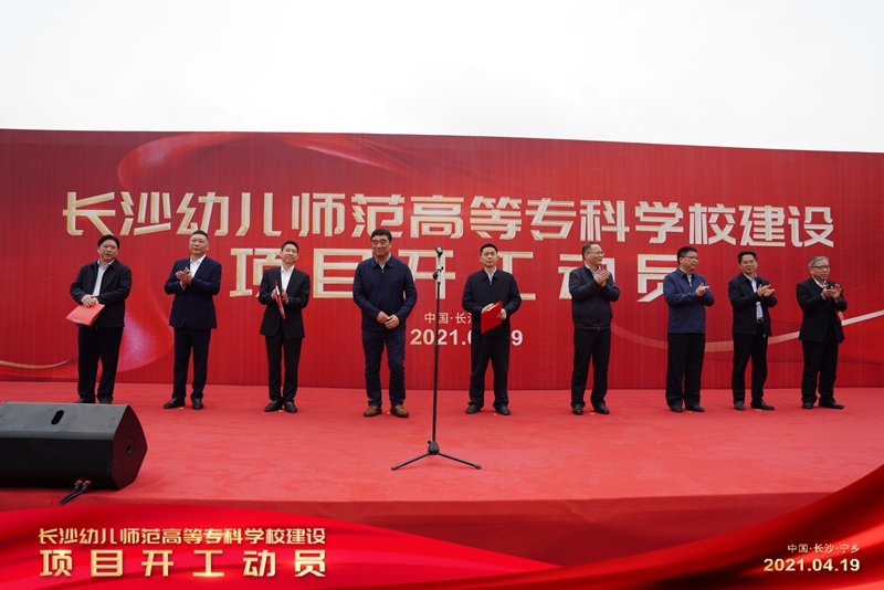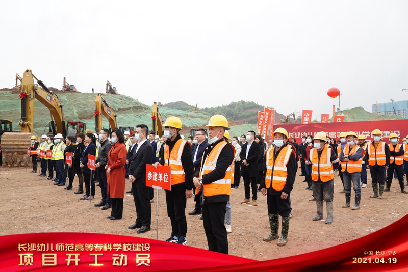 4月19日,长沙幼儿师范高等专科学校新校区建设项目开工仪式在宁乡沩东新城项目建设现场隆重举行。上午10点18分,在喜庆的施工机器鸣笛声中,长沙市副市长刘明理宣布“长沙幼儿师范高等专科学校新校区建设项目开工”,正式拉开了长沙幼专新校建设的大幕。