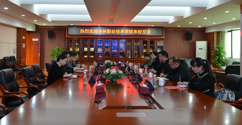 4月20日上午,永州职业技术学院商学院院长蒋铁一行5人来我校考察交流,我校副校长周文华、教务处处长张学锋、学前教育系主任阳艳波、早期教育专业负责人林静参加交流。交流会在我校广益厅举行,张学锋主持会议。
