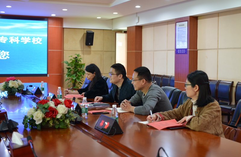 周文华代表学校对来访嘉宾一行的到访交流表示欢迎,并简要介绍了我校幼专建设、专业设置、教学管理等方面的情况。随后,双方一起观看了我校幼专创建的宣传视频。