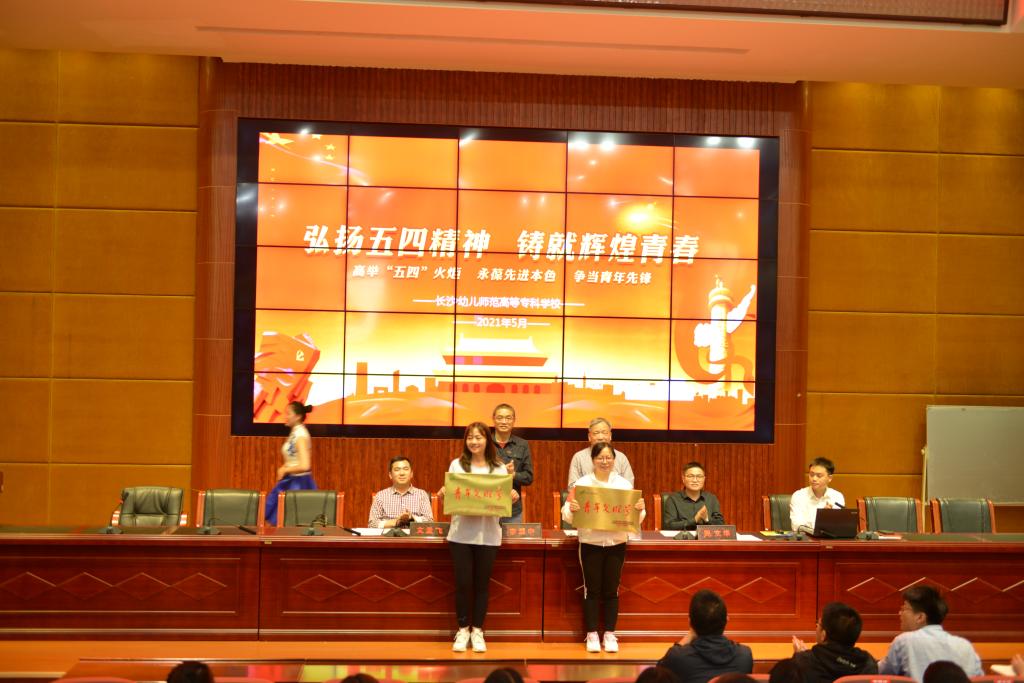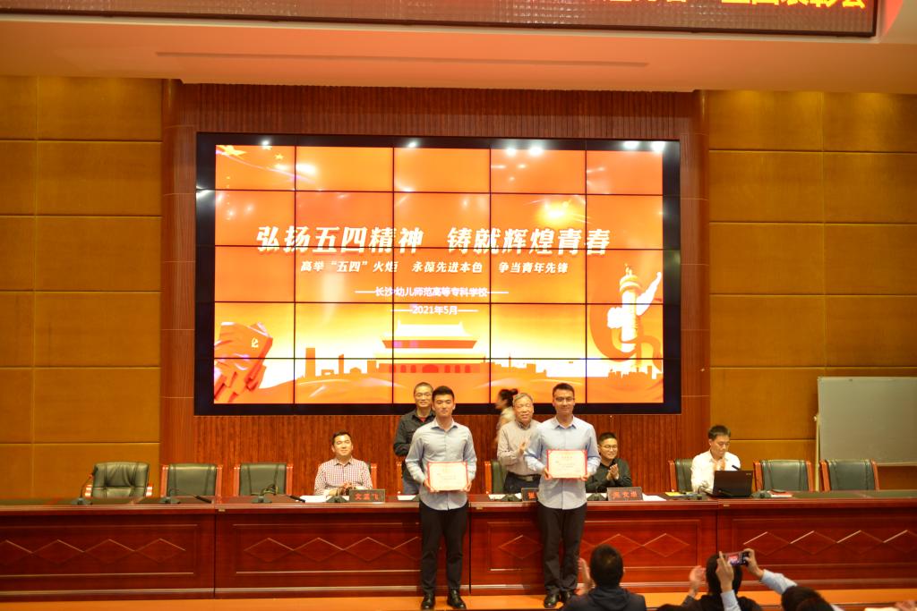 市级青年岗位能手戴申林代表受表彰的青年教师发言,表示传承五四精神,不断提升工作能力和服务水平,在教书育人岗位上示范带头,奋发有为,不负青春,不负时代!