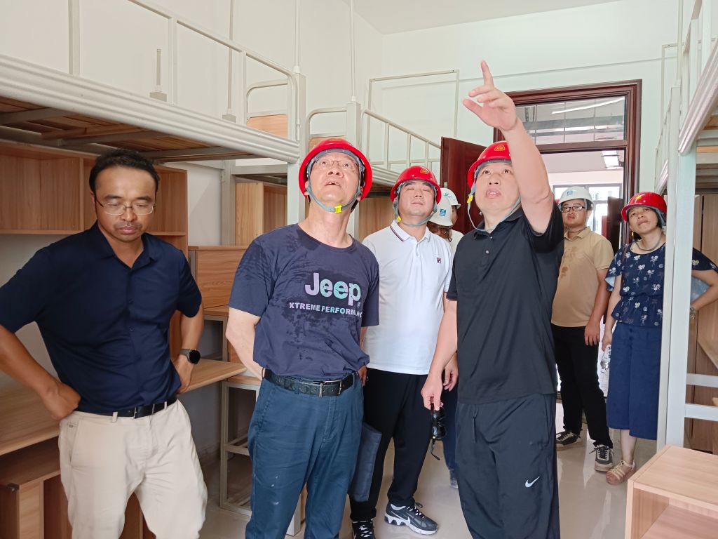 校领导一行先后走访了新校区办公楼、教学楼、食堂、学生宿舍、图书馆、田径场等地,实地查看了相关设备设施的准备调试、人员配备情况,仔细查验了教学楼的施工质量与安保设施,细致了解各部门、二级学院办公场所、实训室等区域布局和使用功能情况。每到一处,校领导都认真听取相关单位的工作汇报,重点询问工作开展中面临的困难,并就相应问题进行解答和研讨。同时针对即将进行的整体搬迁入住和学生开学入校后的重点工作进行了安排部署。校领导对学生住宿条件十分关心,大家一同深入学生宿舍、洗漱室、开水房,仔细查看,实地了解宿舍家具配备、水电供应等基础设施情况,强调要给广大师生营造绿色环保、安心舒适的工作学习环境,一定要紧绷安全弦,把牢质量关,做好收尾工作,迎接学生入住。