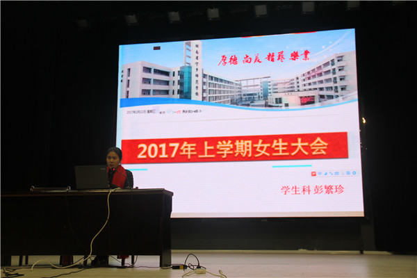 2017年2月22日,长沙市信息职业技术学校组织全校女生召开女生教育大会,学生科副科长彭繁珍老师发表主题讲话“加强文化修养·争做快乐女生”。