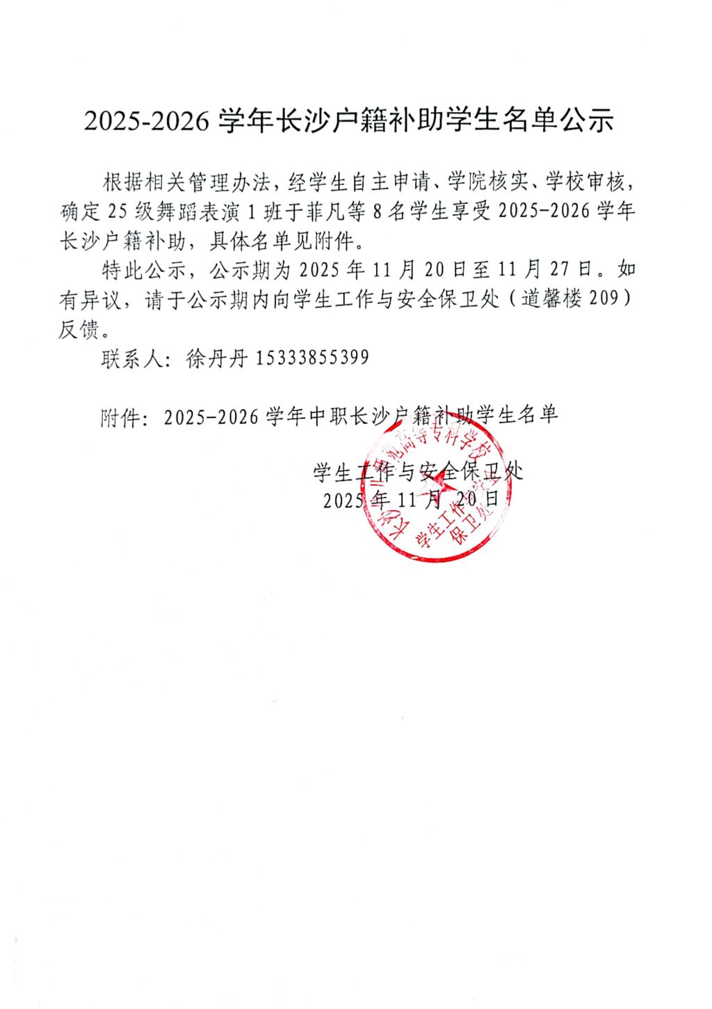 2025-2026学年长沙户籍补助学生名单公示