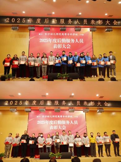 12月25日下午,长沙幼儿师范高等专科学校2025年度后勤服务人员表彰大会在业馨楼报告厅温情启幕,学校党委副书记、校长李毅,副校长周文华,健生公司总经理曹志立以及后勤团队齐聚一堂,为那些扎根后勤一线、以点滴付出诠释服务初心的先锋们,送上最诚挚的表彰与敬意。此次表彰了6位服务楷模,32位优秀服务工作者以及5个食堂服务优秀档口。