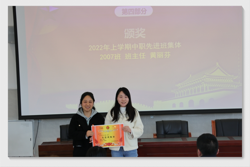 大会共有五项议程,大会在慷慨激昂的国歌声中正式开始,会上,首先由王潇翔副院长对上学期工作做总结,并且提出了本学期的发展要求;接着彭勃副院长宣读获奖名单,各获奖班级及学生依次上台领奖,我院党总支书记李科、院长吴佳蒂、副院长彭勃、副院长王潇翔依次为获奖集体和学生颁奖,祝贺获奖者,愿获奖者继续努力,不断成就更完美的自己。
