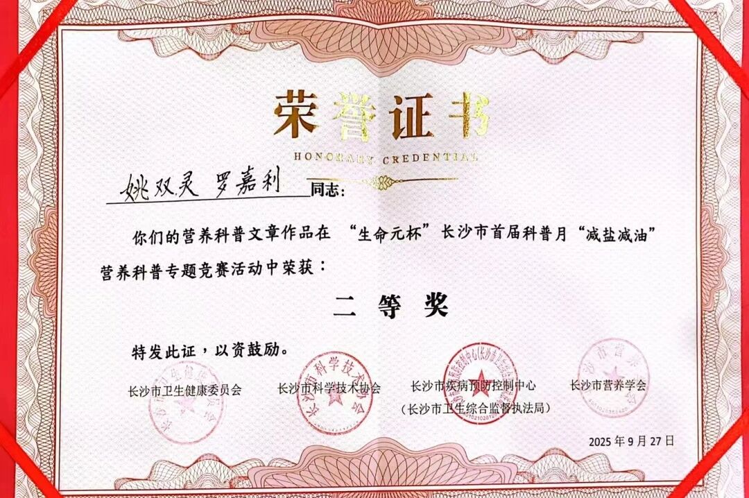 在金秋九月,当大多数2025级新生还在适应全新的校园节奏时,学前教育学院医学营养专业的新生罗嘉利,却在入学不到一个月的时间里,完成了她的第一个“小目标”——她在长沙市首届科普月营养科普专题竞赛活动中荣获二等奖,用行动诠释了何为“有备而来”与“厚积薄发”。