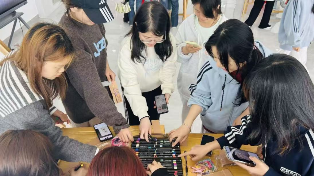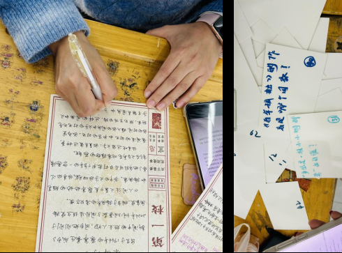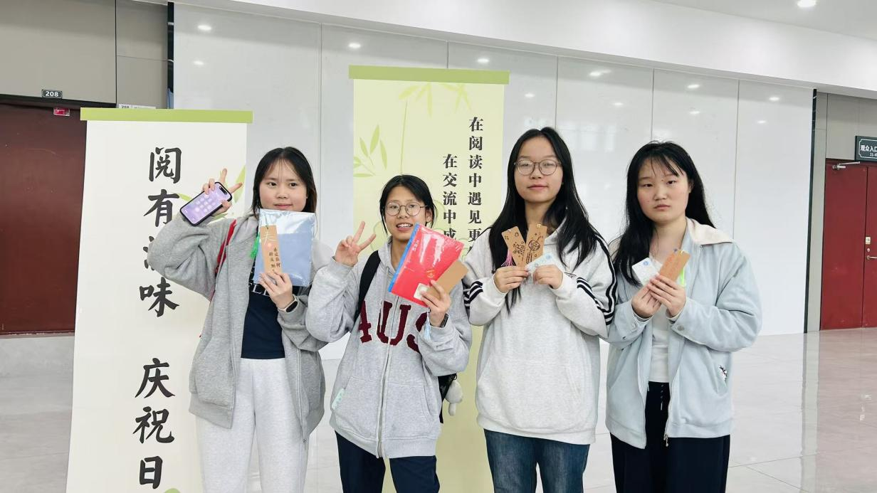 活动过程采用游园会的形式,设置了书香飞花、书签制作、经典作品推荐、地标灯谜、知识问答等八大特色板块,让同学们感受“读书”带来的不止于“读书”本身的乐趣,触摸湖湘文化的底蕴。“书香飞花”以湖湘经典作品为主题开展飞花令,“沅有芷兮澧有兰,思公子兮未敢言”“先天下之忧而忧,后天下之乐而乐”,一句句经典诗句从同学们口中脱口而出。书签制作活动中,同学们兴致勃勃,将湖湘地标与经典名句相结合,制作自己的专属书签。有同学写下了“不以物喜,不以己悲”的箴言;有同学写下《曾国藩家书》中的经典语句……小小的书签成为文化与阅读记忆的载体。经典作品推荐环节中,同学们则化身“好书推荐官”,“我推荐《芙蓉镇》,这本书里的故事就发生在我的家乡,这里不仅有优美的风景,还有好吃的米豆腐,书中充满烟火气,充满人文情怀,温暖而有力量。”通过录制短视频的方式,经典作品变得鲜活可感。地标主题灯谜和知识问答环节中,“洞庭天下水,岳阳天下楼——打一湖湘地标”“张家界所属的湘西土家族苗族自治州,孕育了哪部经典文学作品”“常德桃花源与哪位诗人的诗句相关”等题目,将湖湘地理、历史、文学与地标深度绑定。最后,当同学们通关所有环节,就能领取奖励——极具代表性的湖湘文学作品《边城》《芙蓉镇》,同学们捧着领到的经典书籍及奖品合影留念,笑容里满是收获与喜悦。