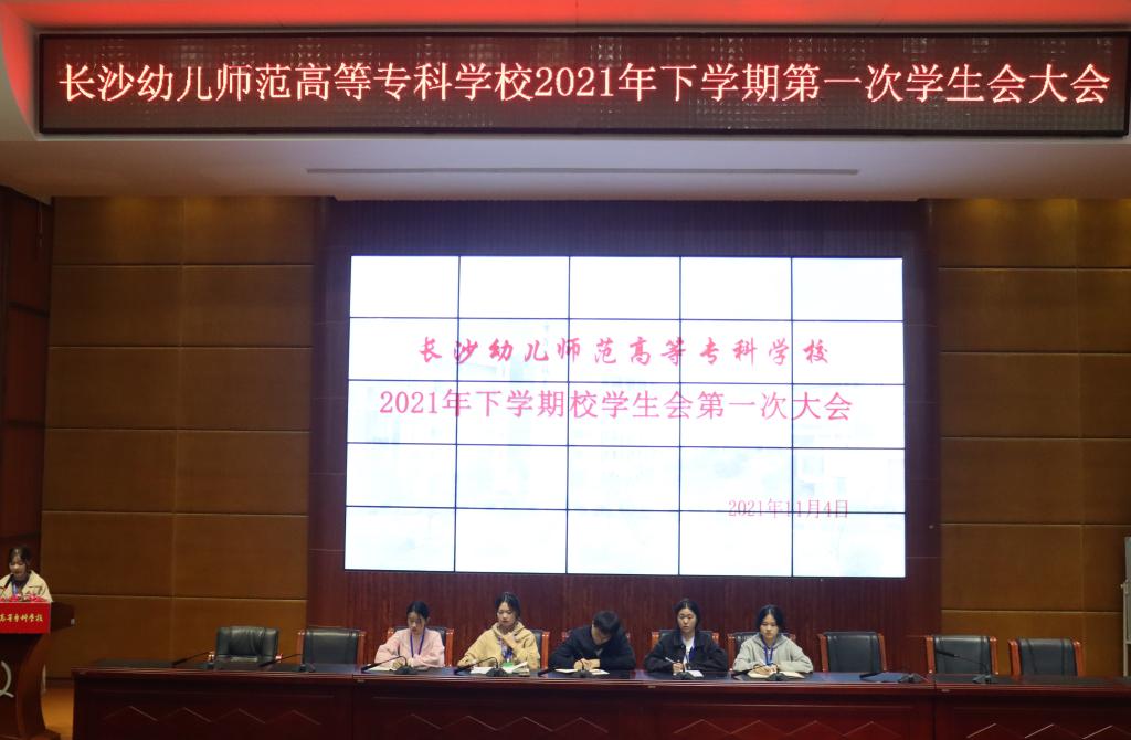 为全面加强学生干部队伍建设,有效提升学生干部素养,进一步推进学生会工作的有序开展,11月4日中午12:50长沙幼儿师范高等专科学校2021年下学期学生会第一次大会在汇智厅隆重举行,团委副书记祝居里、团委刘燕老师、学生会全体成员出席会议,会议由秘书部部长邱芊主持。
