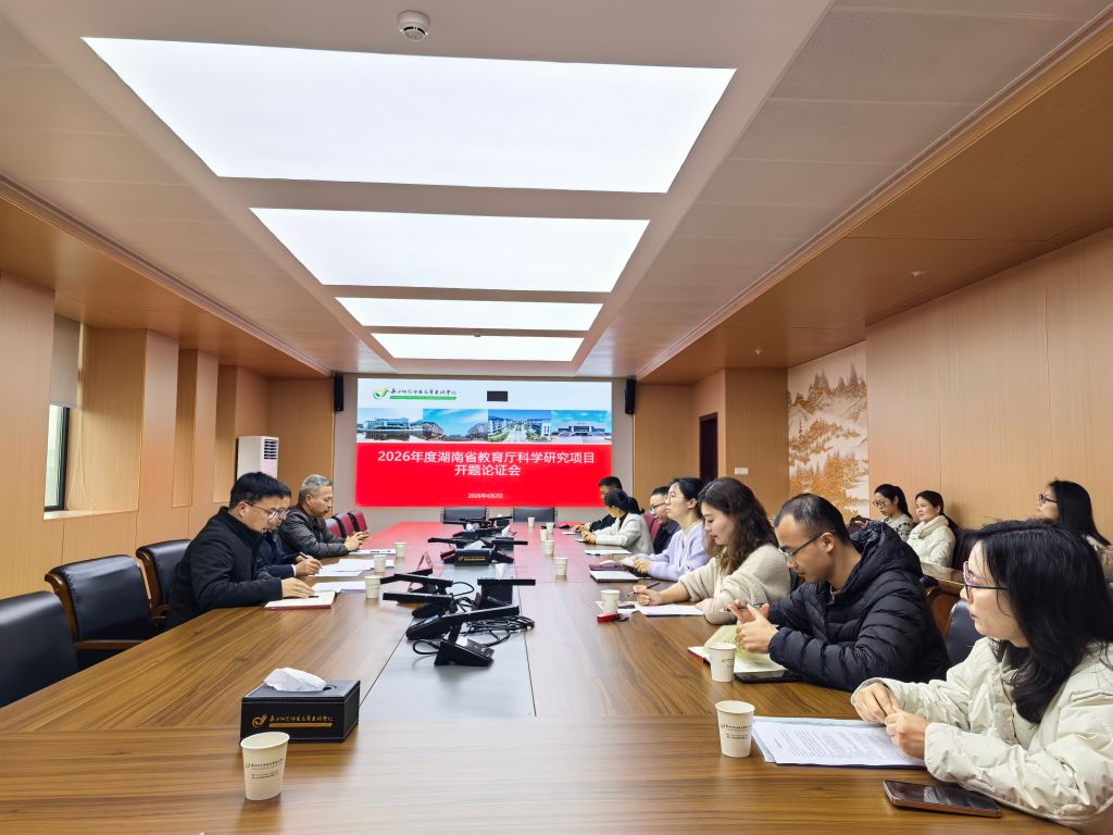 4月2日下午,我校顺利召开2026年湖南省教育厅科学研究项目开题论证会,对近期立项的1项优秀青年项目、6项一般项目进行开题论证。此次会议旨在规范科研项目实施流程、明确研究方向,确保立项项目高质量推进。长沙职业技术学院党委委员张良教授,长沙商贸旅游职业技术学院教授吴敏良出席会议现场指导,我校科研处处长何曙光、各立项课题主持人及核心成员参加了此次开题论证会,会议由何曙光主持。