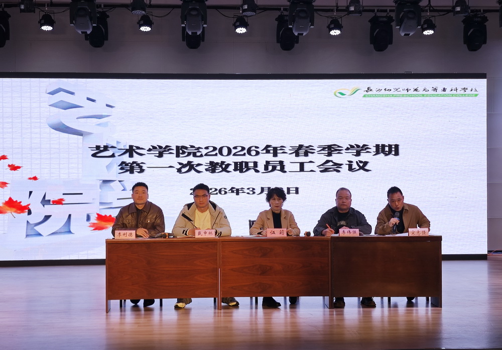3月6日上午9点,艺术学院在音乐厅召开2026年春季学期第一次全体教职工大会。学院领导班子成员伍莉、李伟强、戴申林、宋志强、李利德及全体教职工参加会议,共同擘画新学期发展蓝图,明确工作方向与核心任务。会议由院长李伟强主持。
