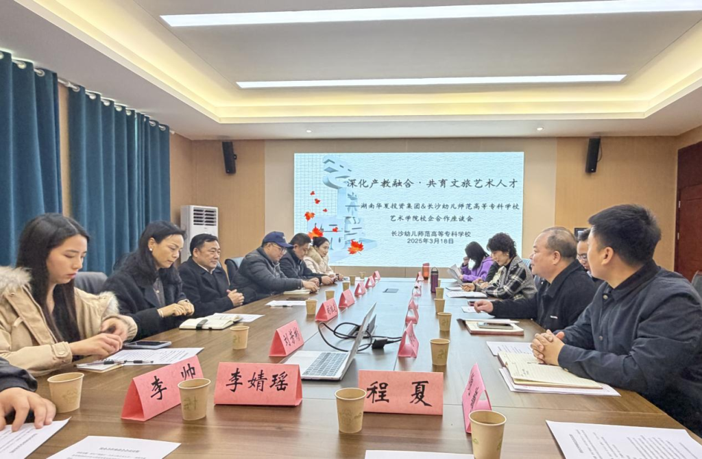 为深化产教融合、推进校企协同育人,3月18日下午,湖南华夏投资集团与长沙幼师高专艺术学院校企合作座谈会在艺馨楼A座210会议室召开。