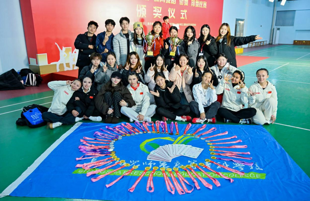 赛场上,队员们动作流畅有力,编排新颖动人,每一次转身、每一次跳跃,都凝聚着平日训练的汗水与智慧。她们用身体诠释节奏,用笑容传递自信,在强手如林的竞争中,不仅展现了过硬的专业技能,更体现了我校学生顽强拼搏、合作进取的团队精神。