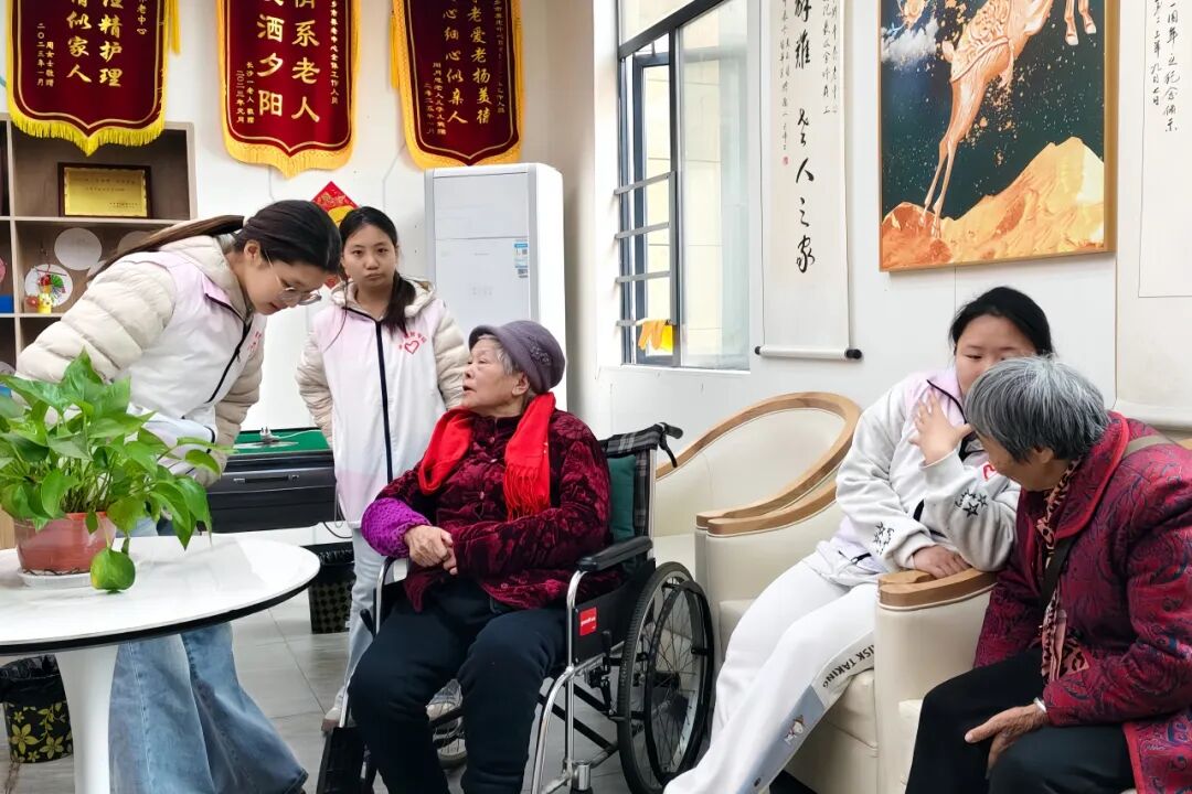下午,志愿者们围坐在老人身边,开启了一段温馨的陪伴时光。老人们娓娓道来自己的人生故事与生活智慧,志愿者们认真倾听、真诚回应,用陪伴驱散了晚年的孤寂,也收获了跨越代际的理解与感动。