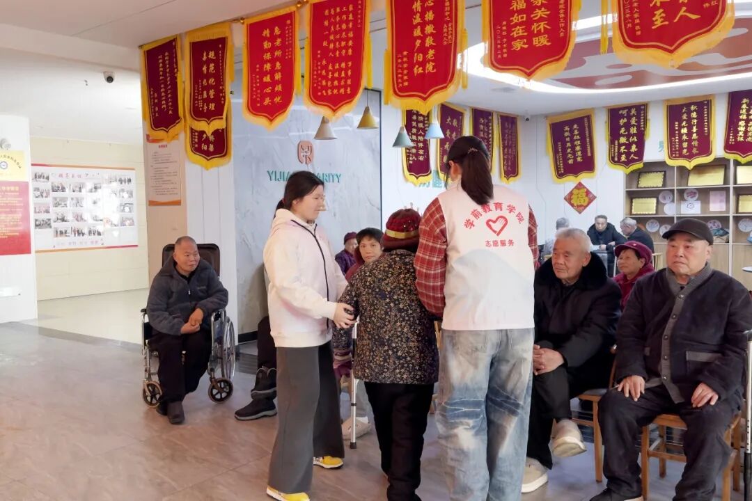 近日,宁乡市养老中心的活动室里,17名来自学前教育学院24级学前2班的志愿者,为这里的老人们办了一场特殊的生日会。