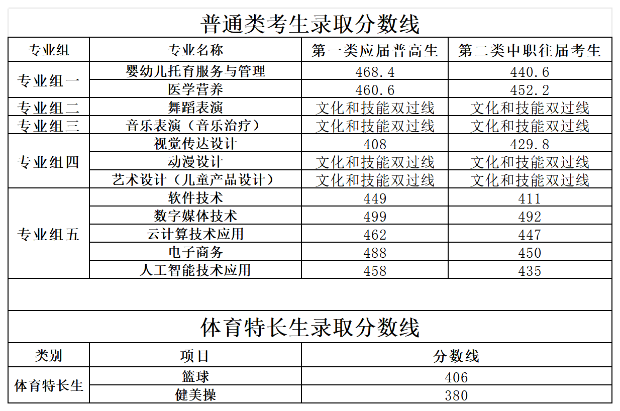 二、长沙幼儿师范高等专科学校2026年单招录取分数线