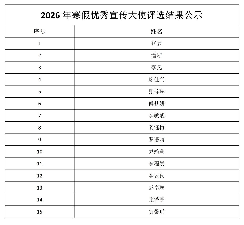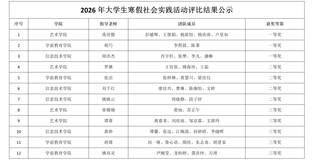 2026年大学生寒假社会实践活动汇报评比结果公示