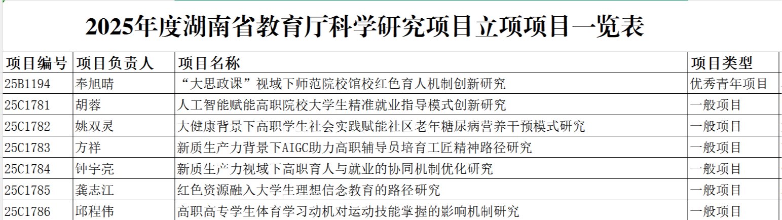 喜报:我校在2025年度湖南省教育厅科学研究项目中…